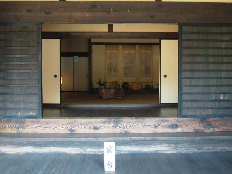 式台 大名は駕籠でここに到着する。履物をはかないで部屋に入れる。 |