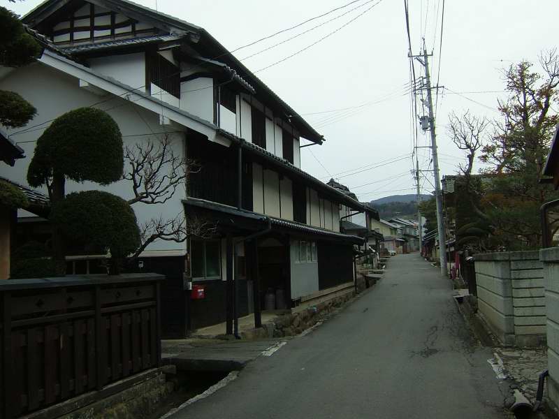 川口屋、 斜交(はすかい)屋敷…街道に面して斜めに家並みを配す。 袖卯建(そでうだつ)が映える。 |