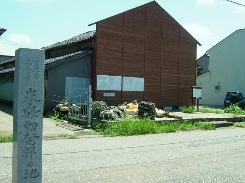 米騒動発祥の碑から海を眺める。倉庫のすぐ側が、海です。 |