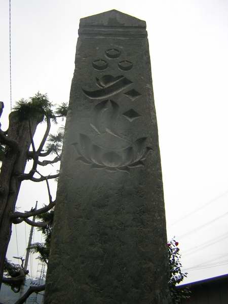 野上下郷青石塔婆 埼玉県長瀞野上にある、日本最大の板石塔婆 5.35m 1369年に追善供養のために建てた。 |